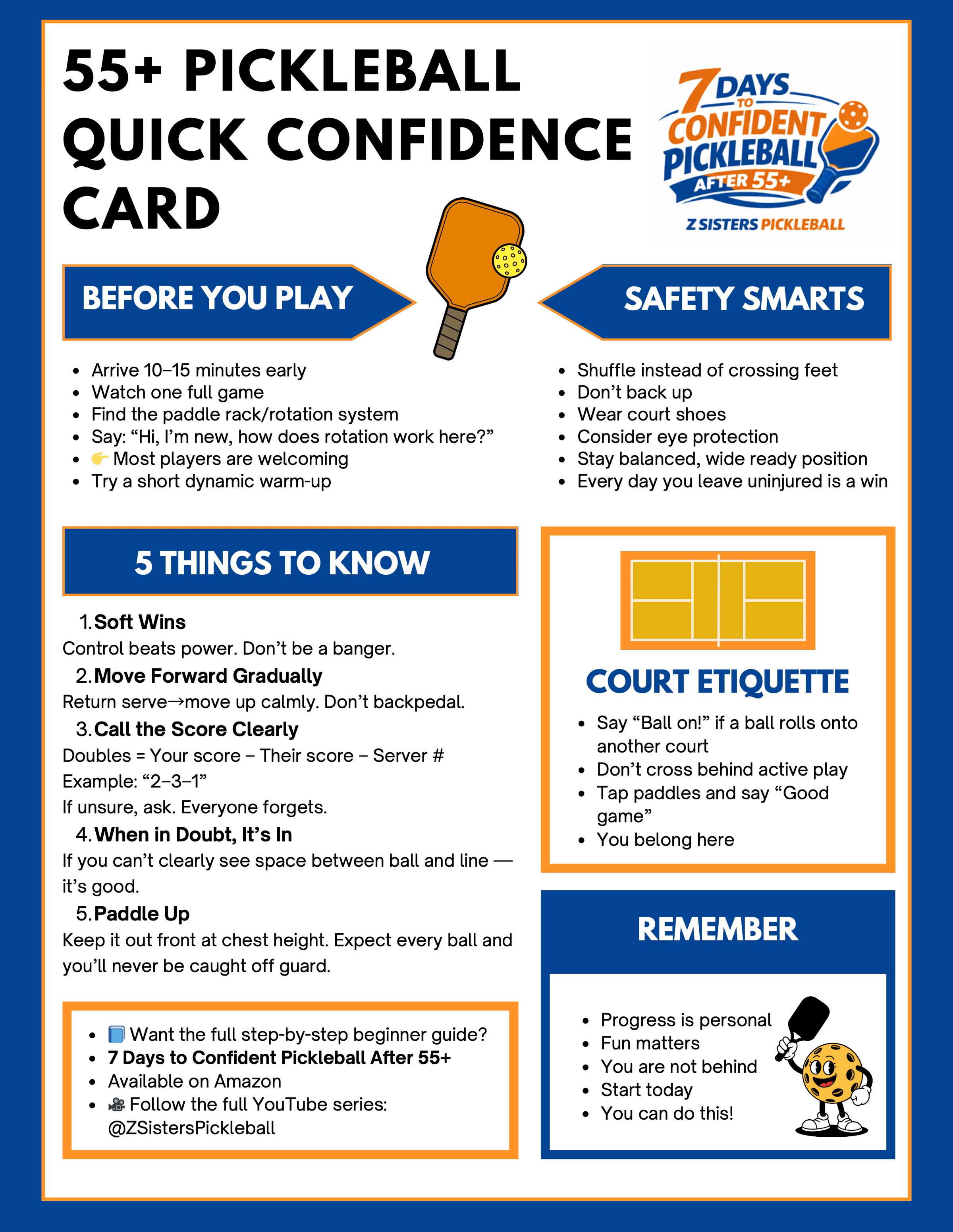 Printable 55+ Pickleball Confidence Cheat Sheet